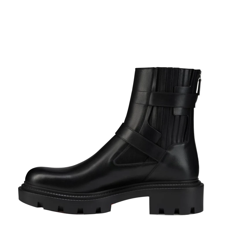 Command attention with the Cheques Double Strap Black Leather Boots with High Sole. Crafted from premium black leather, these boots feature a bold double-strap design paired with a striking high sole for a modern edge.