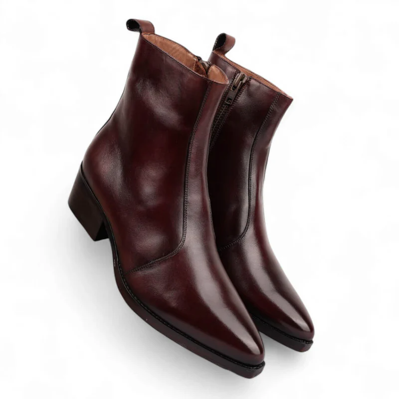 Crafted from premium leather in a rich Armagnac hue, these boots are designed to make a statement. The sleek zipper detail offers a contemporary twist, while maintaining the rugged charm of traditional cowboy boots.