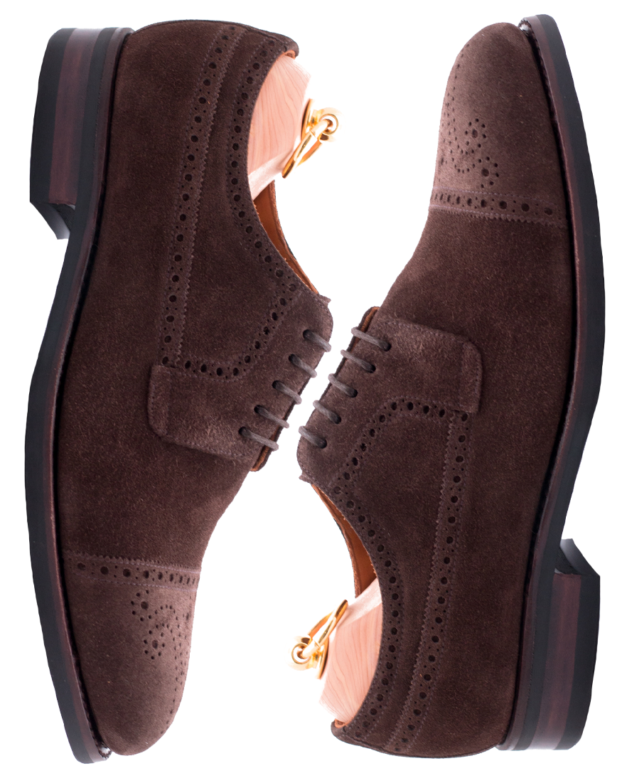 Refined yet versatile, the Cheques Brown Suede Leather Derby is handcrafted from premium brown suede leather, showcasing the natural texture and rich tone of the material. Each pair is cut, stitched, and finished by skilled artisans, ensuring precision, comfort, and a luxurious finish. Built with Arron Goodyear construction and lined with French sheepskin leather, these Derbies are made to order exclusively for you, combining durability, elegance, and the timeless handcrafted excellence that defines Cheques.