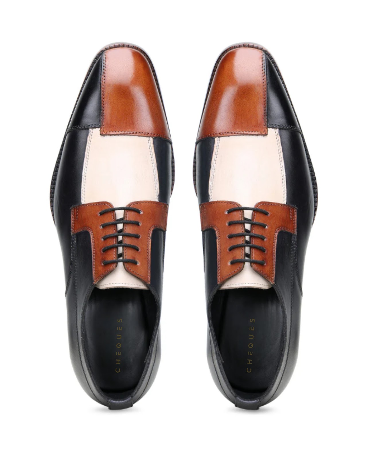 Cheques Triple Tone Designer Leather Derby