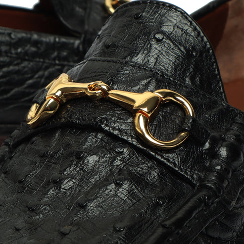Cheques Black Ostrich Leather Loafers