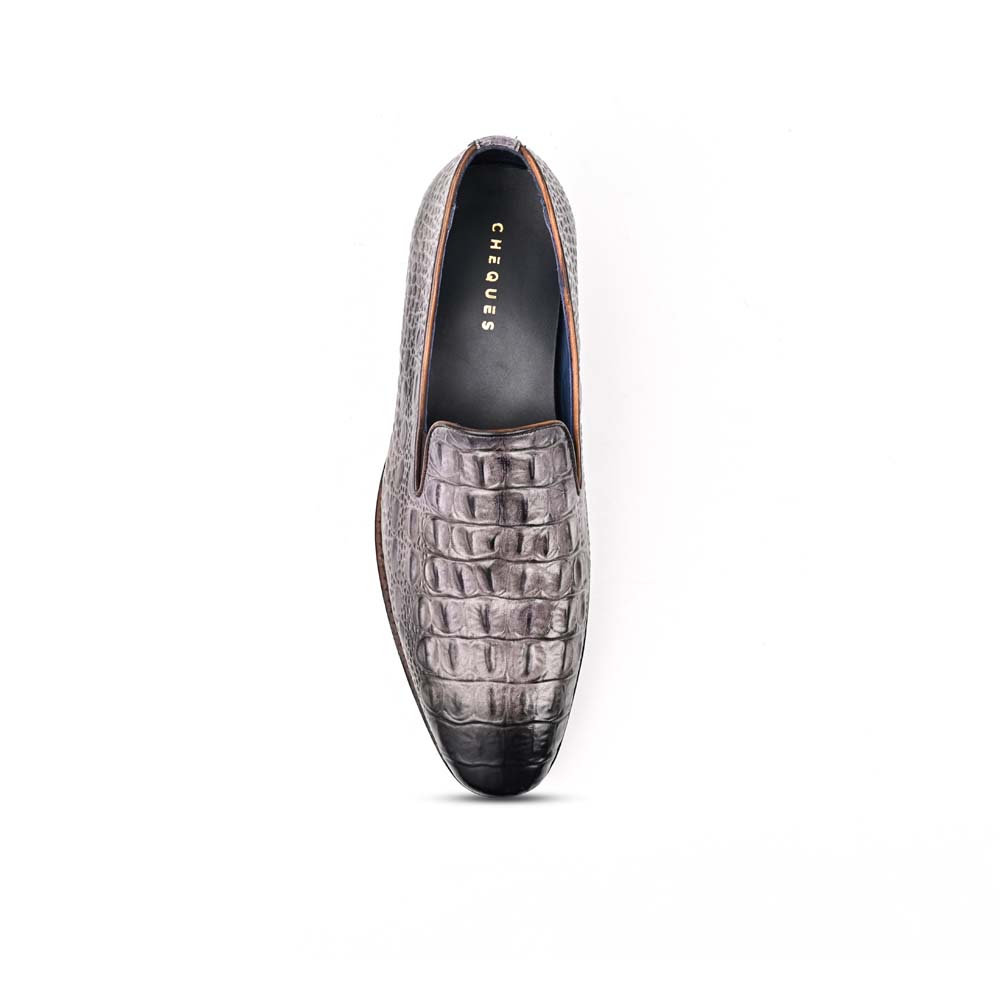 Step into distinction with the Cheques Black Ostrich Leather Loafers — where texture meets timeless sophistication. Crafted from genuine ostrich leather, each pair carries its own unique grain, making no two alike. The rich black tone exudes effortless luxury, while the supple leather lining and handcrafted sole promise unmatched comfort. Designed for the modern gentleman who values quiet confidence over loud statements, these loafers are not just worn — they’re experienced.