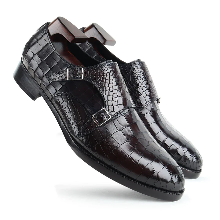 Be the first to review “Cheques Brown Croco Leather Double Monkstrap Shoes”
