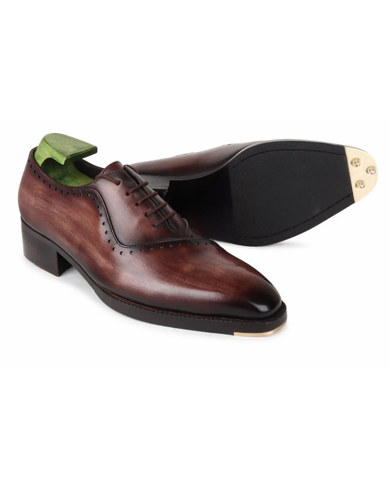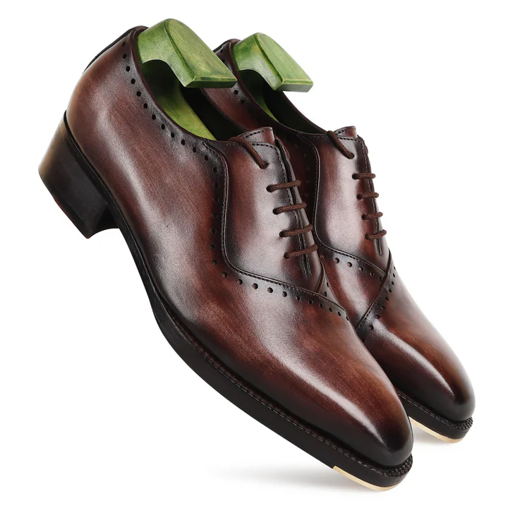 Sleek and bold, the Brown Mirror Glossed Brushed Patina Oxford features a