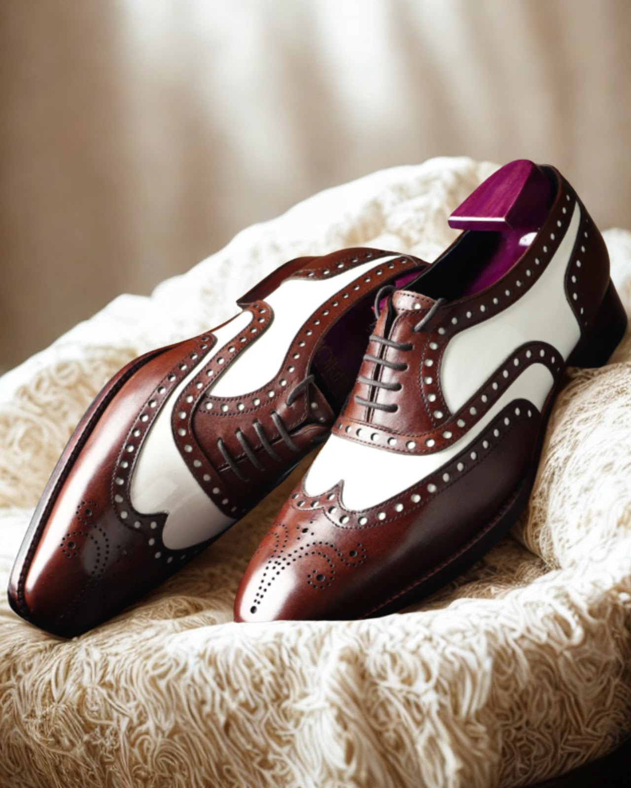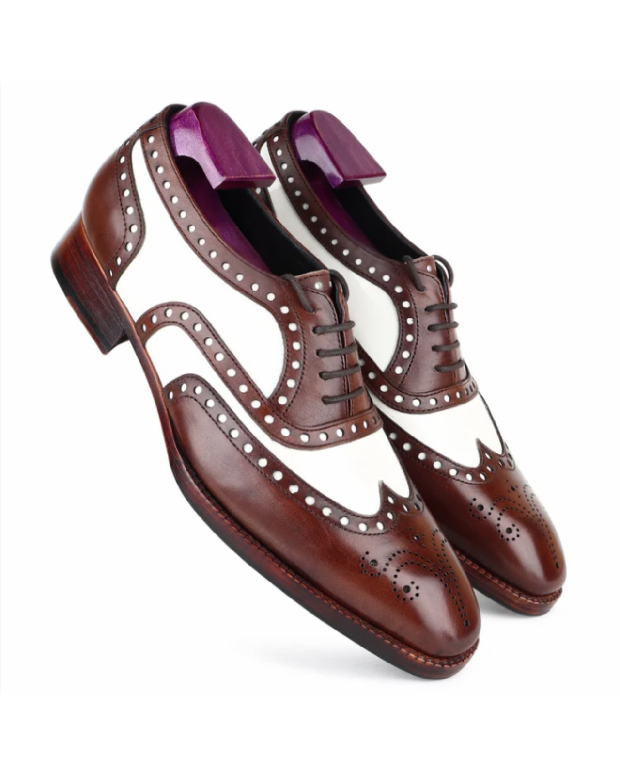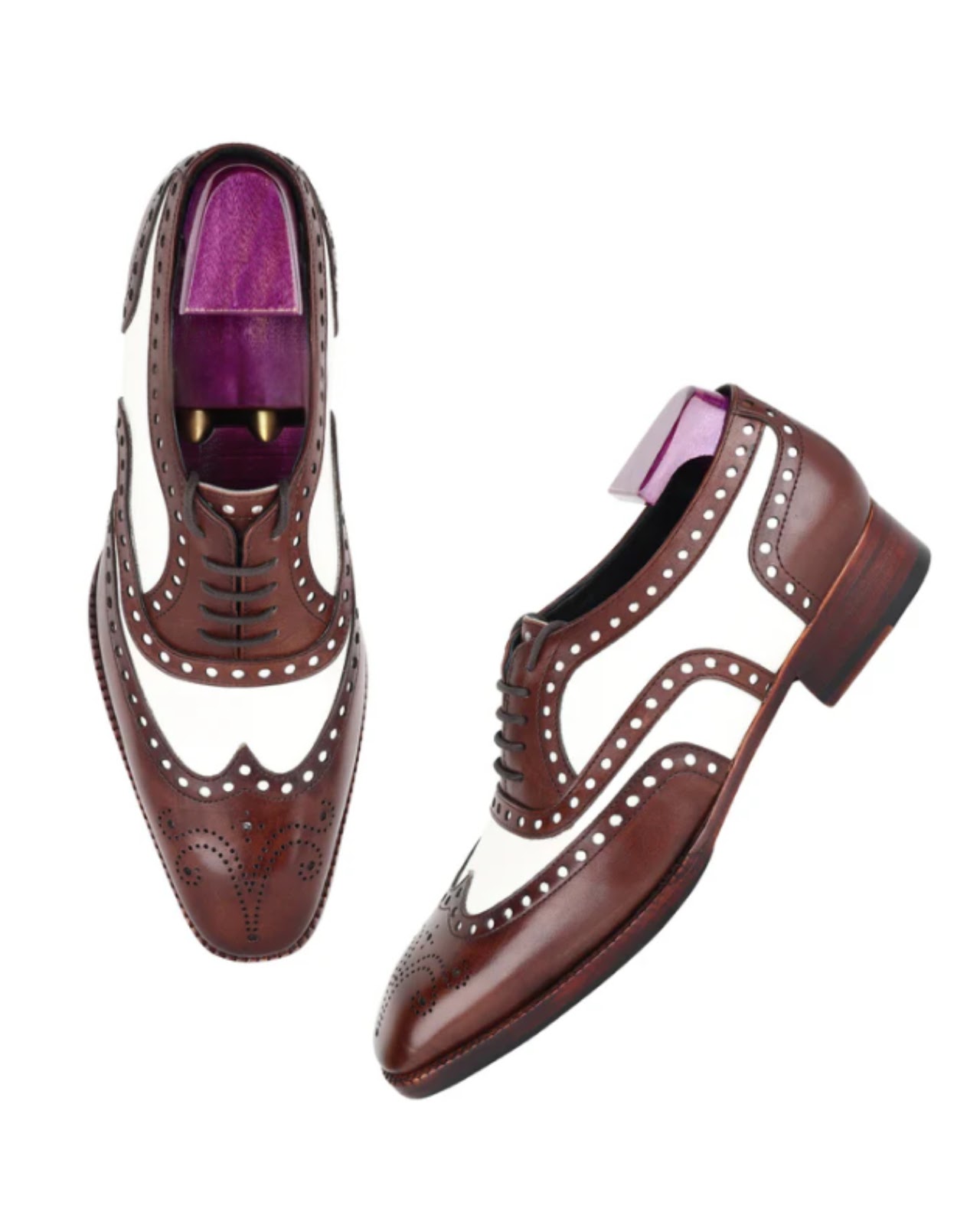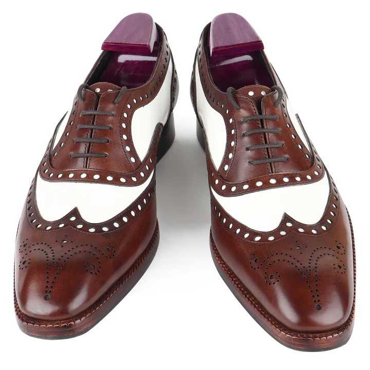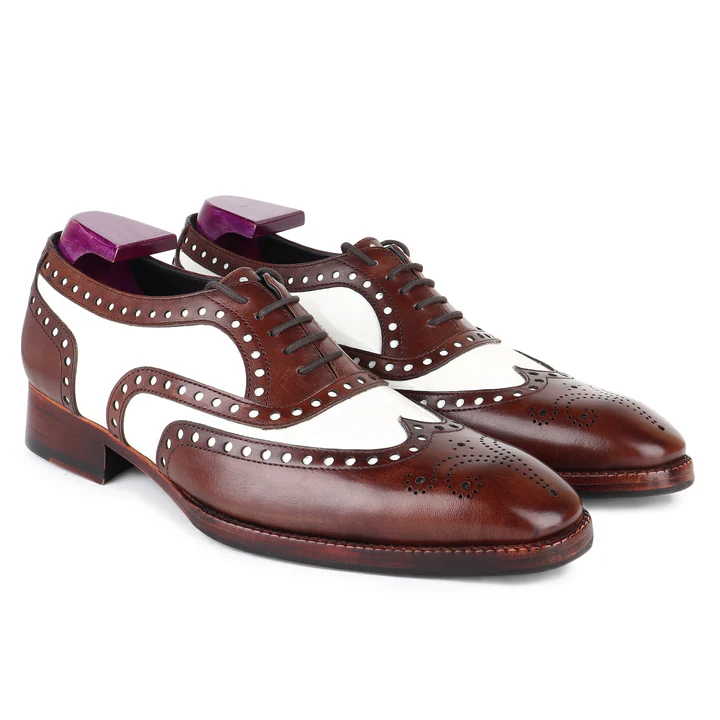 Timeless elegance meets modern sophistication with our Brown & White Classic Wingtip Oxfords. Crafted from premium leather, these shoes feature the iconic wingtip design with intricate perforations, creating a striking contrast between rich brown and crisp white. Perfect for the discerning individual, these Oxfords offer both comfort and style, effortlessly elevating any outfit.